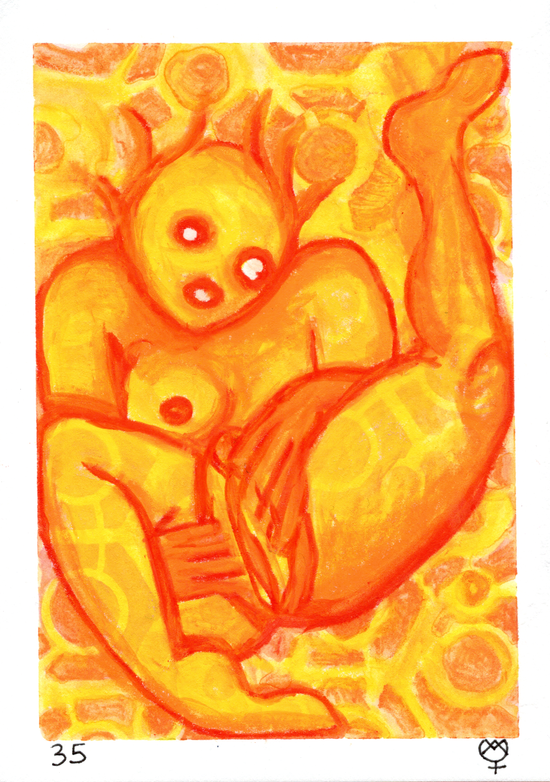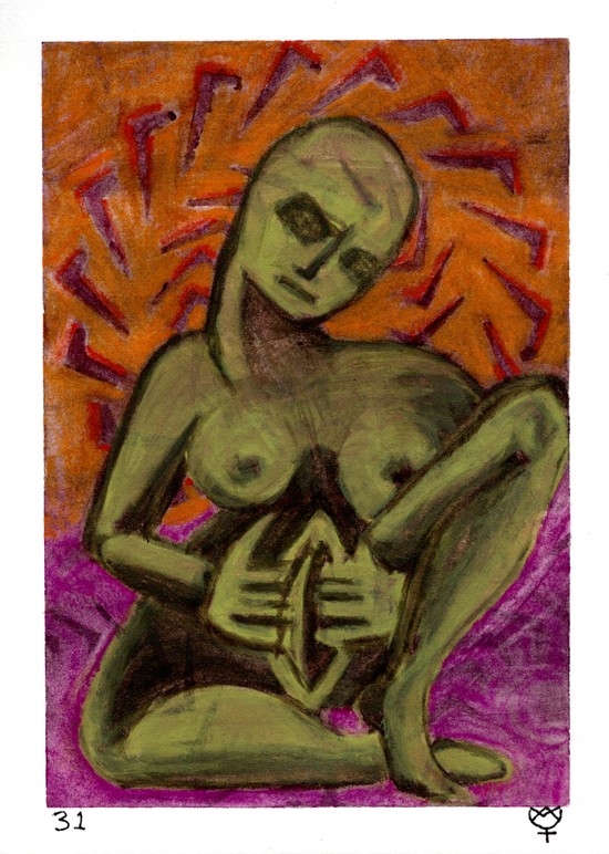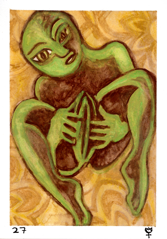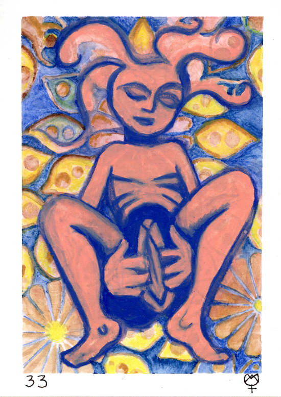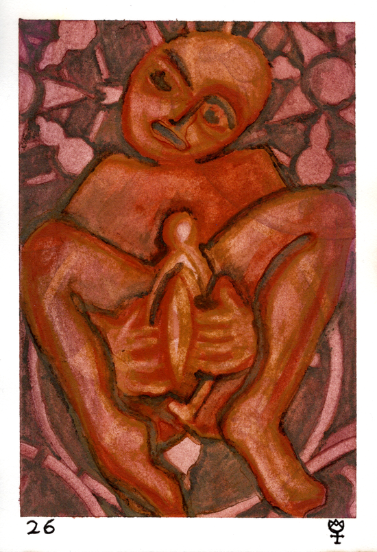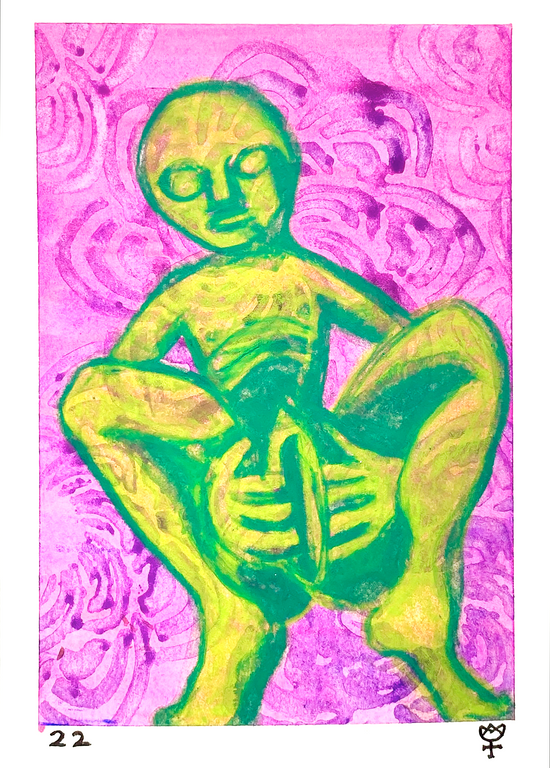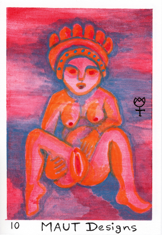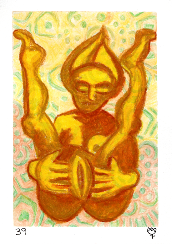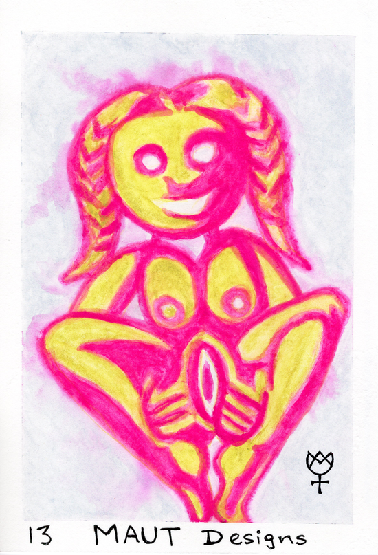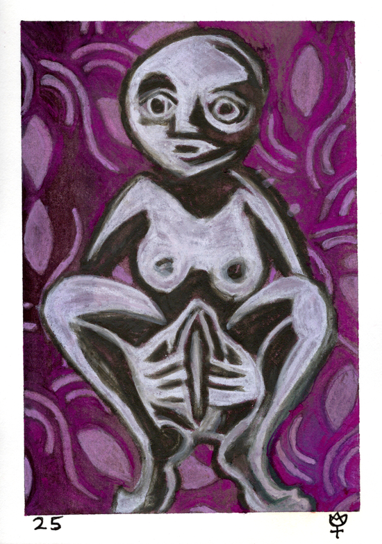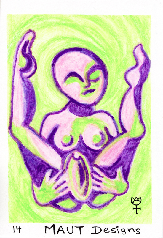 Sheela na Gig is a mysterious acrobatic figure, with exaggerated female proportions. Celebrate the Goddess, fight the patriarchy, and ward off evil.